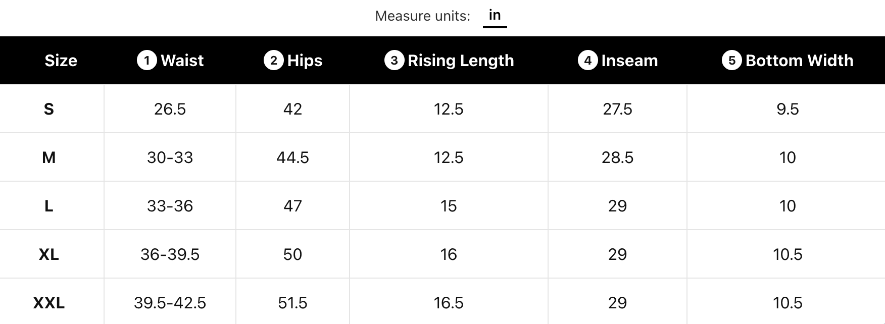 SIZE CHART