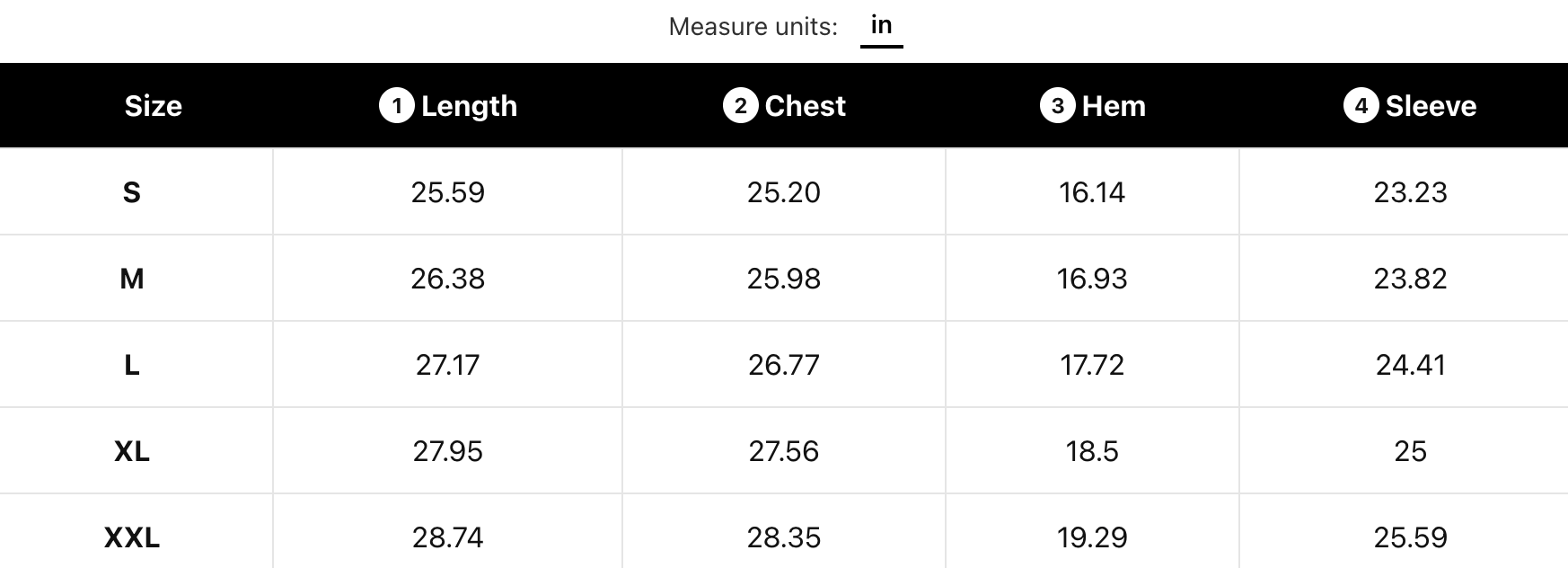 SIZE CHART