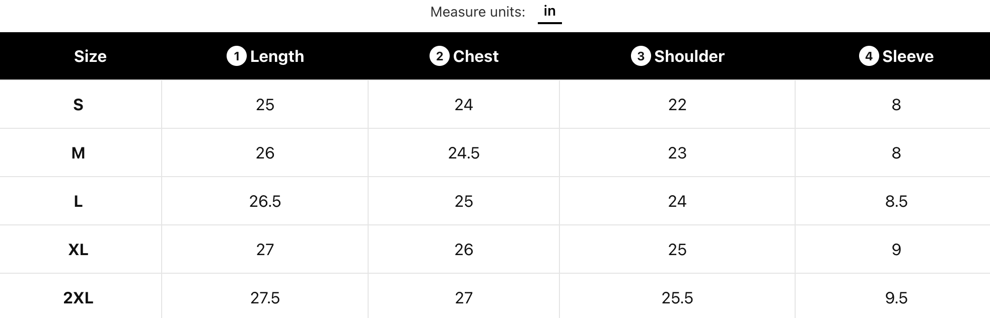 SIZE CHART